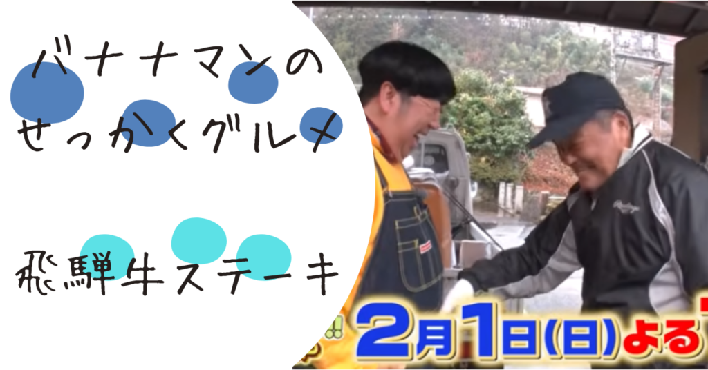 2026年2月1日テレビ番組でバナナマンのせっかくグルメで日村さんが美味しそうに頬張る飛騨牛サーロインステーキを見て、どこのお店か気になった方も多いはずです。 飛騨高山や下呂温泉エリアには数多くの肉料理店がありますが、番組で絶賛された名店はどこ... -