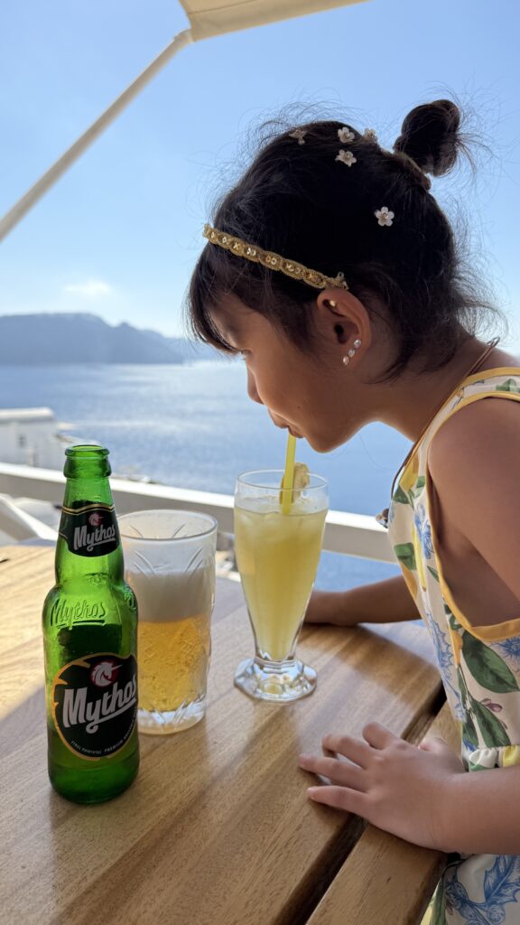 美しいエーゲ海を見下ろしながらの一杯は、間違いなくこの旅のハイライトの一つでした。