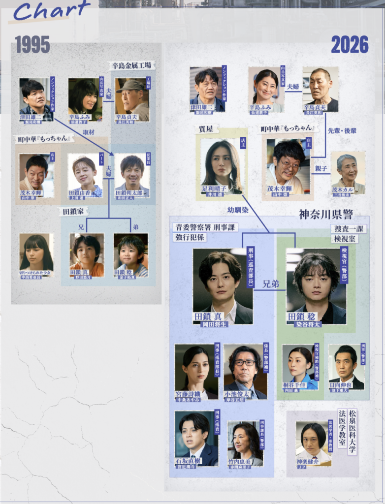 31年前の「田鎖家一家殺傷事件」を軸に、現在の主要キャストの相関図を整理しました。