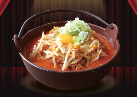 - 圧倒的なボリューム たっぷりの豚肉、もやし、白菜キムチ、玉ねぎ、コーンが山盛りになっており、一杯で大満足の食べ応えです。