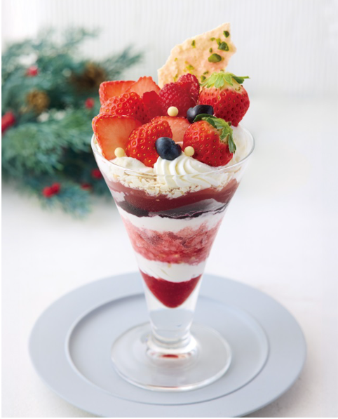 フレッシュな苺を贅沢に使用。あまおう苺のゼリーと、さっぱりとした苺のシャーベットが層になり、フランス産ミルクアイスと組み合わされた、爽やかながらも満足感のあるパフェです。