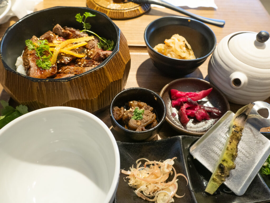 自分で擦るわさびの香りと牛ひつまぶしのハーモニーは、一度食べたら忘れられない味になりますよ。