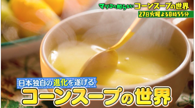 放送を見てこう思った方のために、今回は番組の予習・復習として、紹介される可能性の高い絶品コーンスープのお取り寄せ情報や、気になる店舗情報を徹底的に調べました。