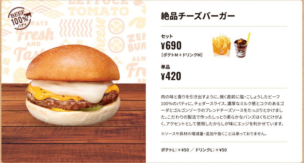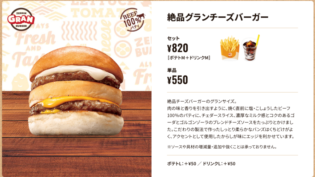 もともとロッテリアでも人気商品だった「絶品チーズバーガー」をさらに進化させ、「絶品グランチーズバーガー」などの名称で展開しています。