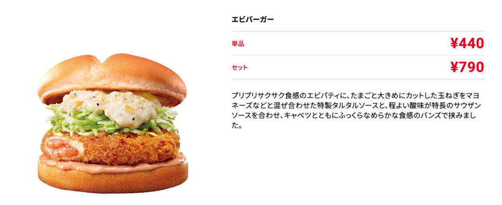 一方で、既存のロッテリアには、長年のファンが多い「エビバーガー」や「リブサンドポーク」といったクラシックな人気メニューが健在です。