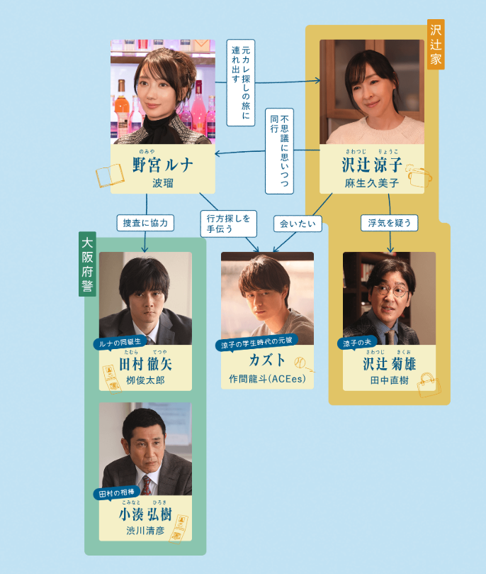 • 夫との再会: 浮気を疑っていた夫・菊雄の行動も、実は涼子を思うがゆえのルナへの相談だった。