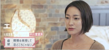 エリナ(平川愛里菜) 33歳。会社員・タレント。シングルマザーとしてのリアルな恋愛観や包容力に、多くの共感が集まりそうです。