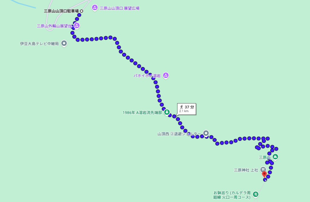もっとも一般的で、歩きやすいのが「三原山頂口」から出発するコースです。