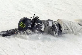 - 状況:1回目の演技中にトリックを失敗し、雪面に激突